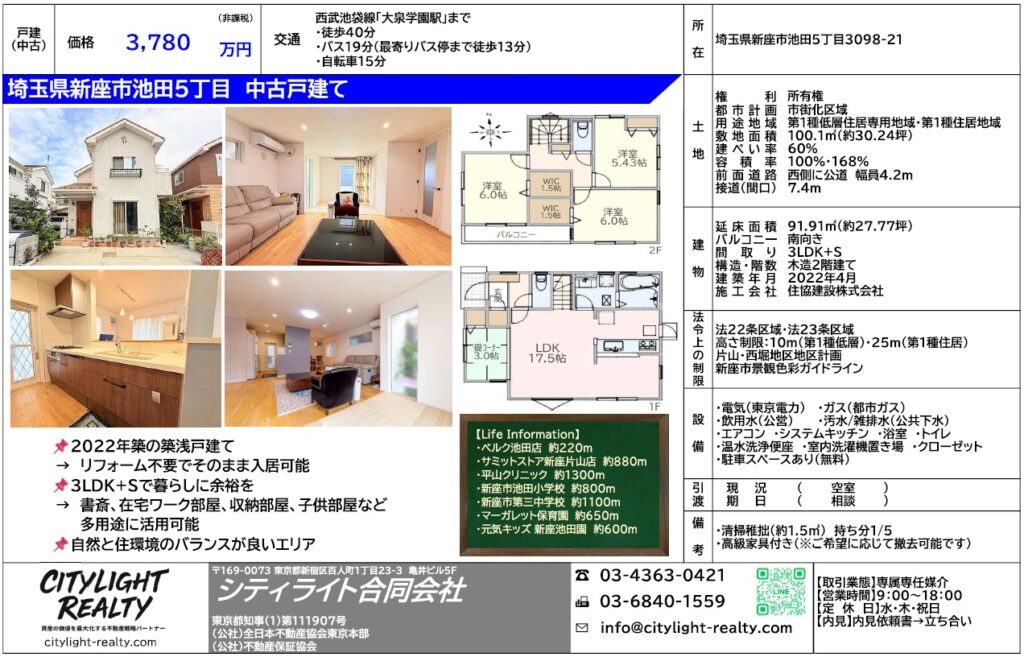 | 所在地 | 埼玉県新座市5丁目 新座市池田5丁目戸建て |